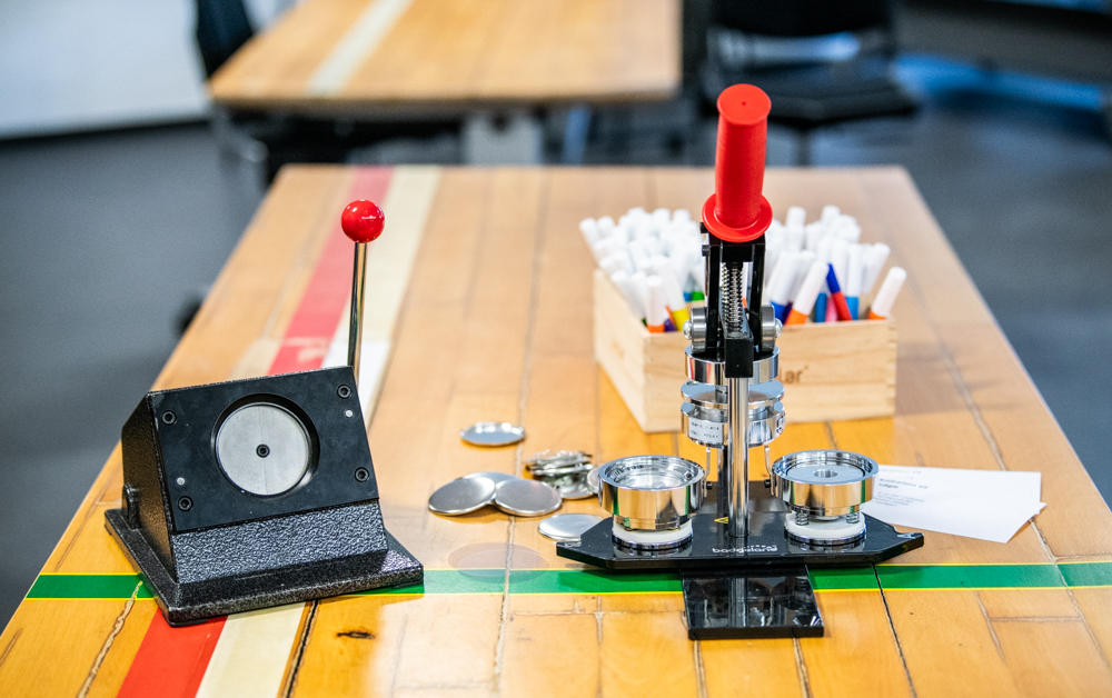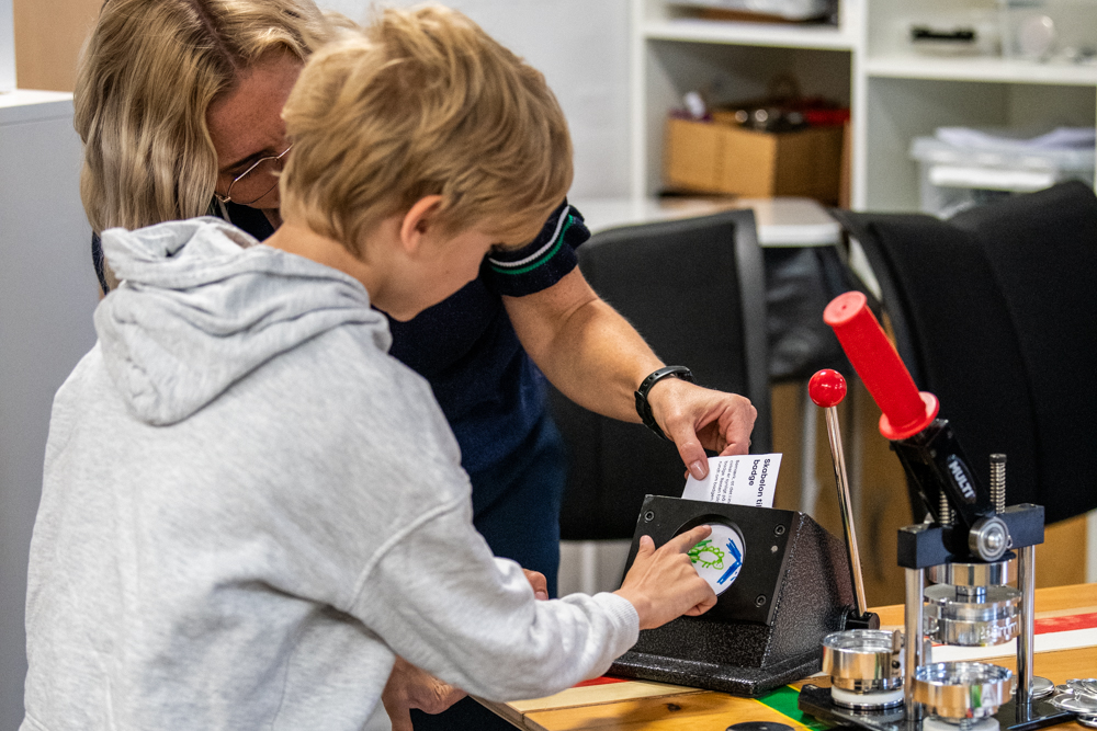 Badgemaskinen giver dig mulighed for at lade eleverne selv fremstille egne badges. Maskinen er meget enkel at bruge og kræver ingen særlige forkundskaber.