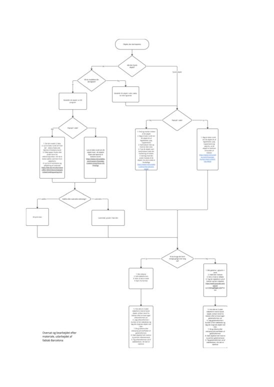 Flowchartet her nedenfor er bearbejdet fra materiale fra fablab Barcelona og viser de overvejelser og processer, der skal gennemgås, når eleverne skal lave deres egne forme. Her finder du også links til vejledninger, hvis elevernes ønskede objekter kræver en 2-sidet støbeform.