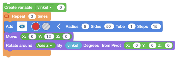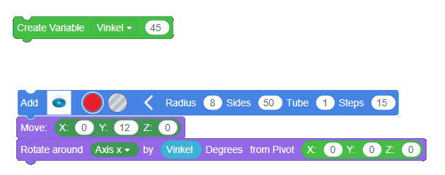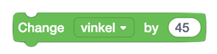 Vi manglede nedenstående brik, som tilføjer 45 grader til vores variabel dvs. første gang vi kører programmet er vinklen 0 grander, anden gang 45 og tredje gang er den 90.