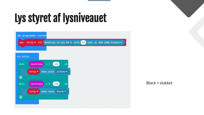 Denne kode er styret af lysniveauet omkring micro:bitten.